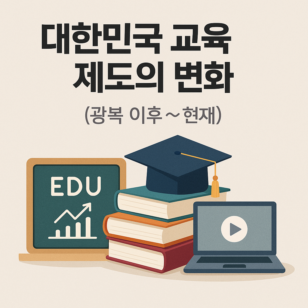 대한민국 교육 제도의 변화 정리. 광복 이후 미군정기의 학제 도입, 의무교육 확대, 수능 도입, 평생교육과 디지털 전환까지 한국 교육사가 걸어온 길을 살펴봅니다.