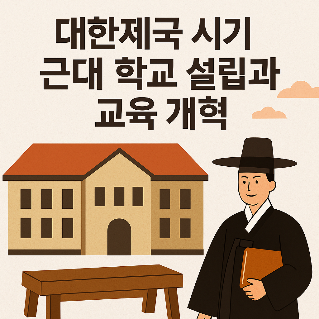 대한제국 시기 근대 학교 설립과 교육 개혁 정리. 한성사범학교, 배재학당, 이화학당, 보성학교 등 주요 학교와 교육 정책, 역사적 의의를 쉽게 설명했습니다.