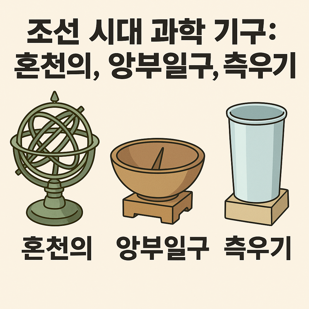 조선 시대 과학 기구 혼천의, 앙부일구, 측우기의 원리와 의미. 세종대왕과 장영실의 발명품으로, 조선 과학의 실용성과 세계적 가치를 살펴봅니다.