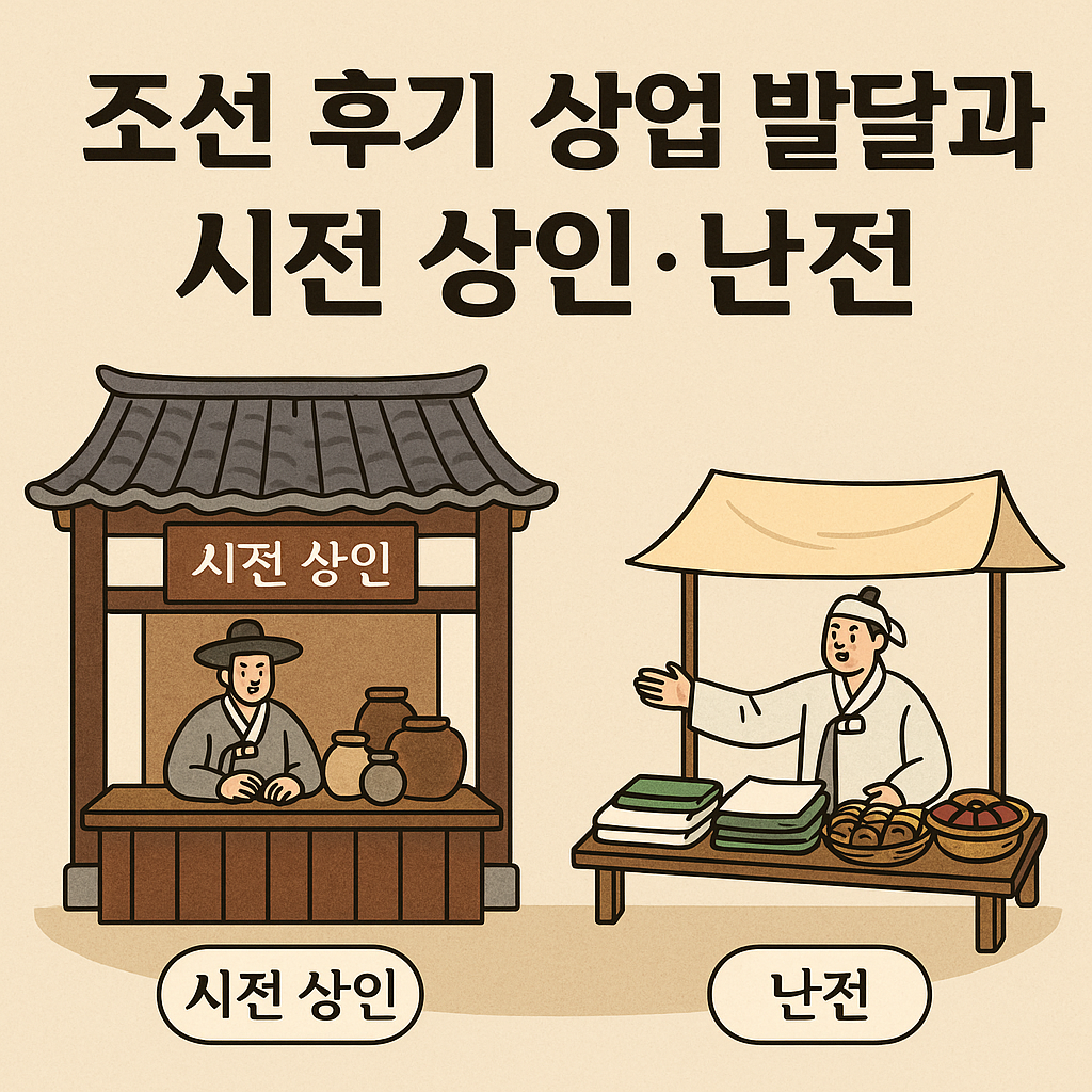 👉 결국 시전 상인과 난전은 공식 독점 vs 자유 경쟁 구도로 대립했습니다.