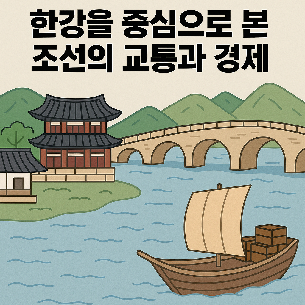한강을 중심으로 본 조선 교통과 경제 정리. 조운 제도, 마포나루·뚝섬의 역할, 시전 상인과 유통 구조, 한강이 조선 수도 한양 경제에 끼친 영향까지 살펴봅니다.